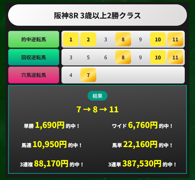 「的中逆転馬」「回収逆転馬」「穴馬逆転馬」を