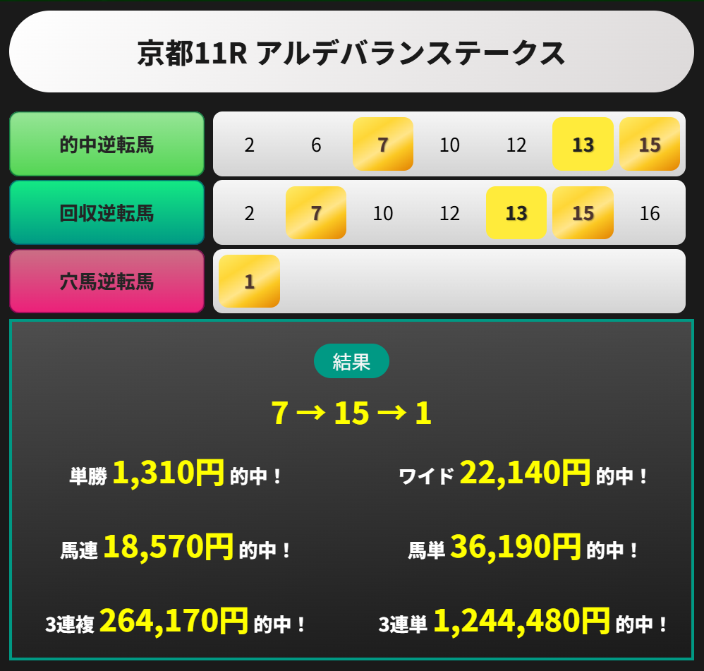 「的中逆転馬」「回収逆転馬」「穴馬逆転馬」を