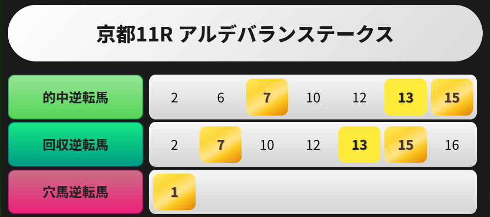 【京都11R アルデバランステークス】の逆転馬セレクトです