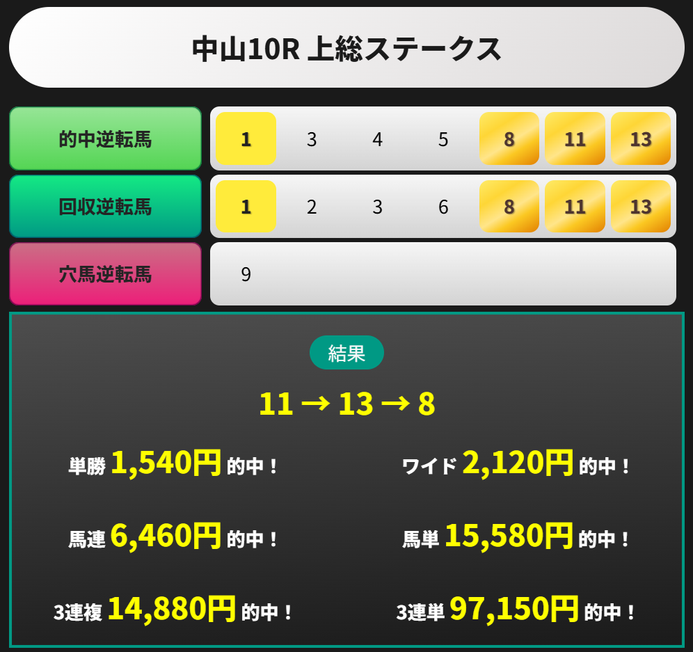 「的中逆転馬」「回収逆転馬」「穴馬逆転馬」を