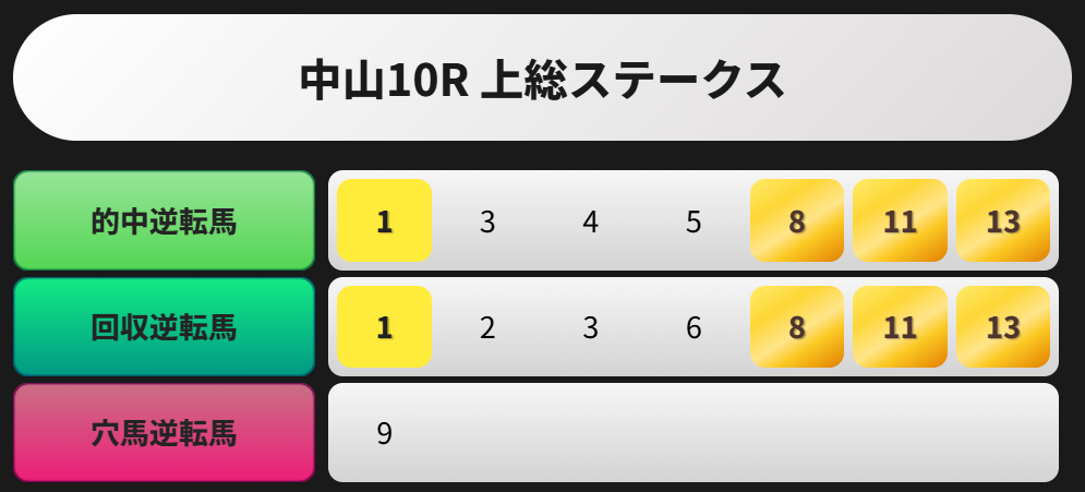 【中山10R 上総ステークス】の逆転馬セレクトです