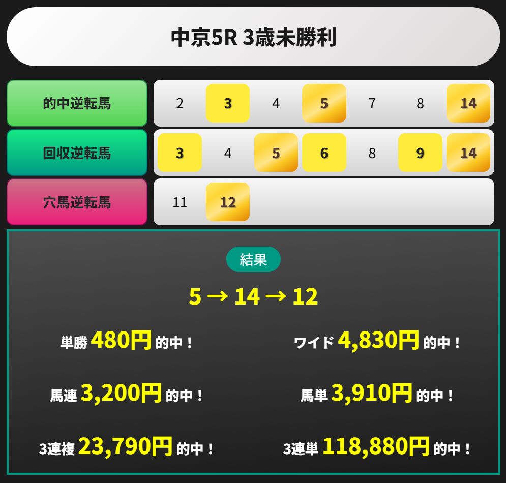 「的中逆転馬」「回収逆転馬」「穴馬逆転馬」を