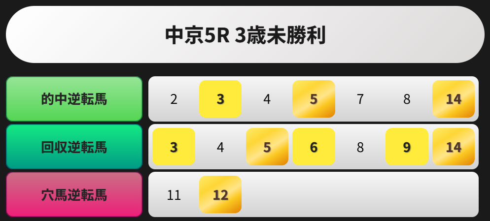 【中京5R 3歳未勝利】の逆転馬セレクトです